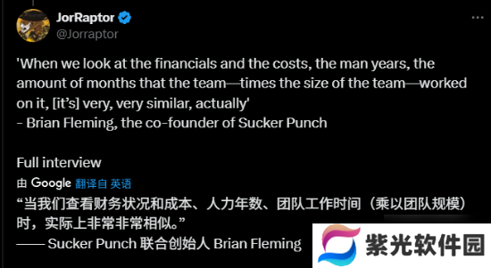根据Brian Fleming的说法,《羊蹄山之魂》的预算与《对马岛之魂》几乎相同,开发人员数量和开发周期也基本一致。